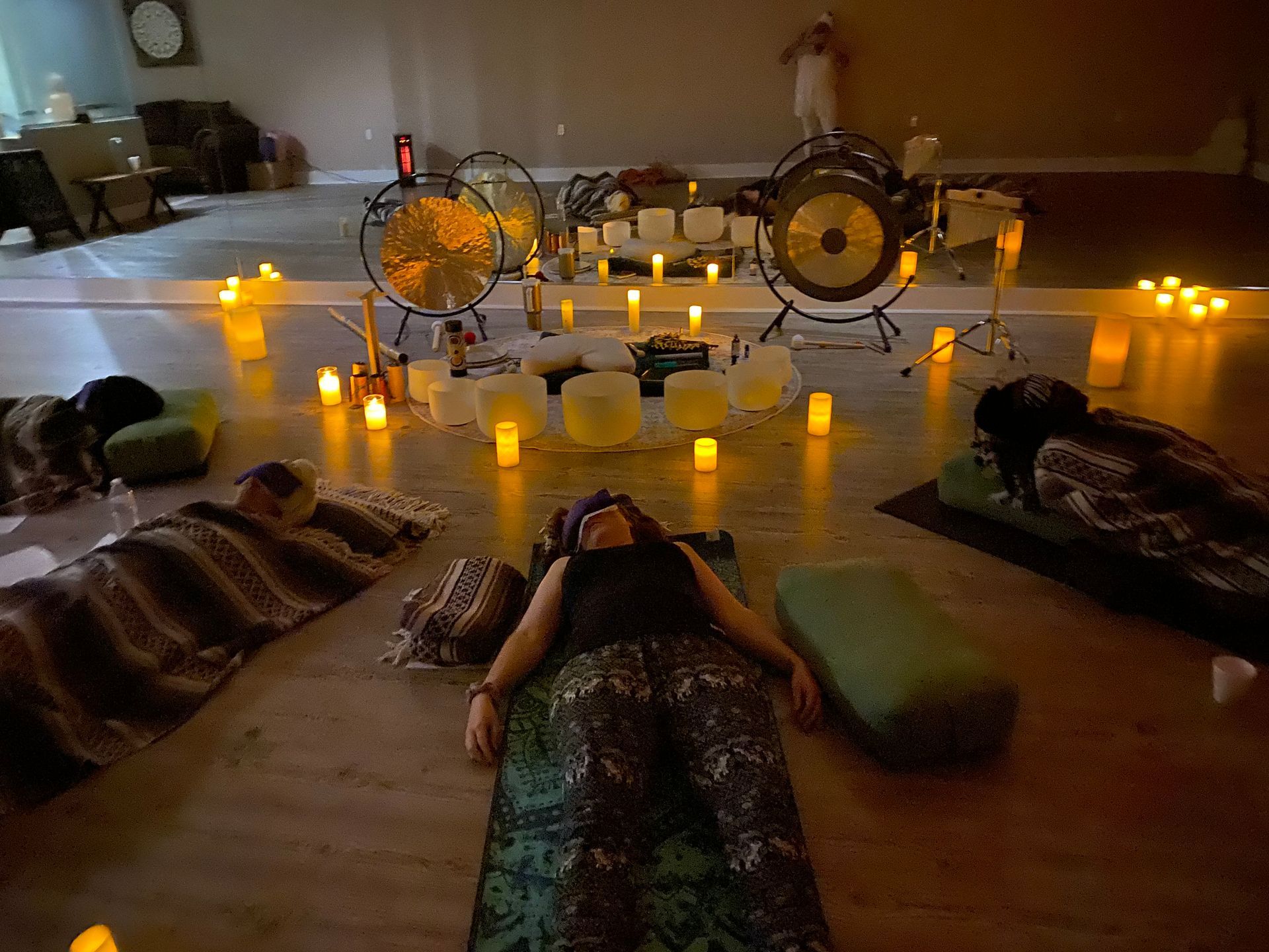 During the sound bath, you will lie comfortably on your yoga mat while Brownin performs with crystal singing bowls, chimes, drums, gongs, and other instruments. The sound resonates throughout the space, sweeping over your body and mind like a wave. Most participants experience calm, clarity of thought, and relaxation immediately following a sound bath.
