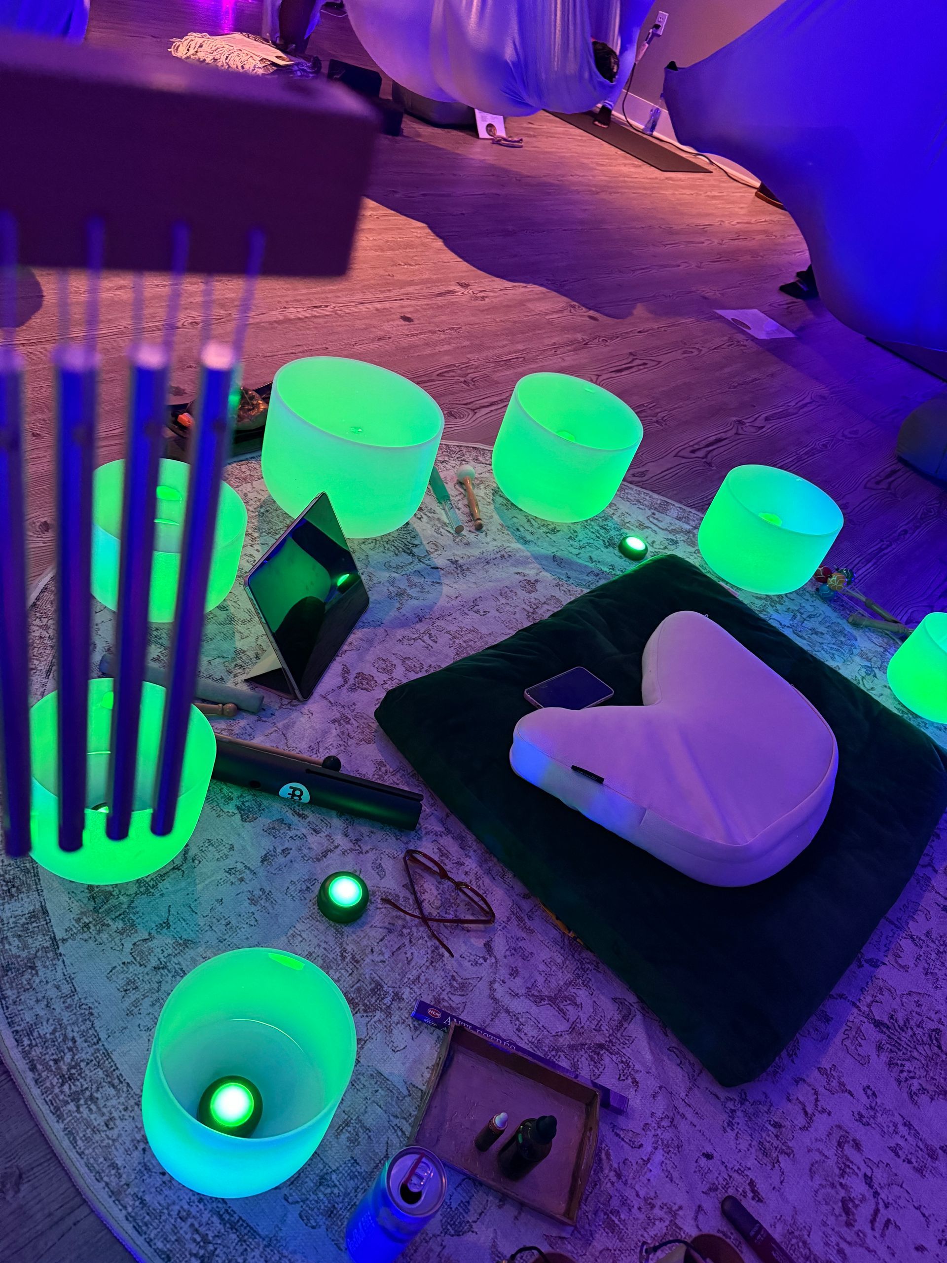 Each session lasts 60 to 90 minutes. After the session, I will gradually reduce the intensity of the sounds and vibrations, followed by a period of silence to allow the experience to sink in.
